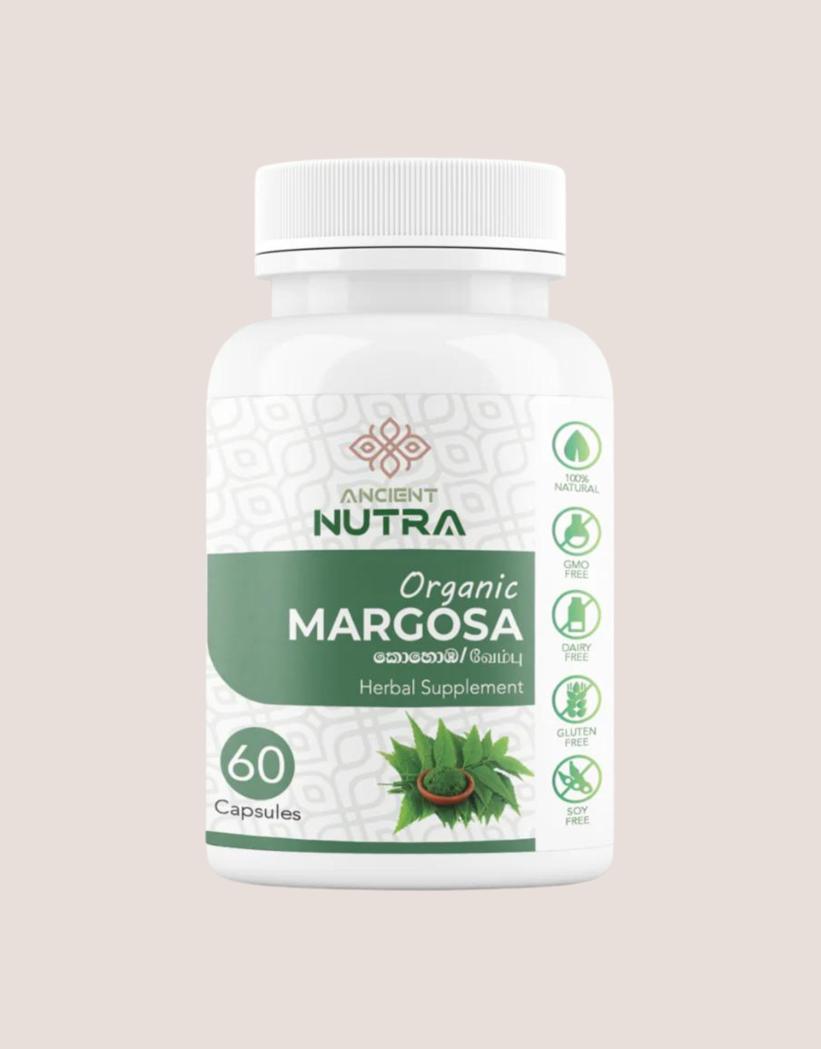 Our Ancient Nutraceuticals Organic Margosa capsules are a powerhouse of health benefits sourced directly from nature. Extracted from the Azadirachta indica plant grown organically in Sri Lanka, each capsule contains 550mg of pure Margosa leaf and bark powder. Margosa, also known as Neem, is celebrated for its immune-boosting properties and ability to purify the blood. It also supports skin and hair health, making it a versatile addition to your daily wellness routine. With anti-fungal and anti-bacterial properties, Margosa is a natural remedy for a variety of health concerns. Trust in the power of nature with Ancient Nutraceuticals Organic Margosa.